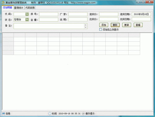 本軟件適用于個體或中小型黃金珠寶首飾商店,可以代替?zhèn)鹘y(tǒng)手工記錄做帳!系統(tǒng)初始登入口令為“333”,使用后請及時修改!