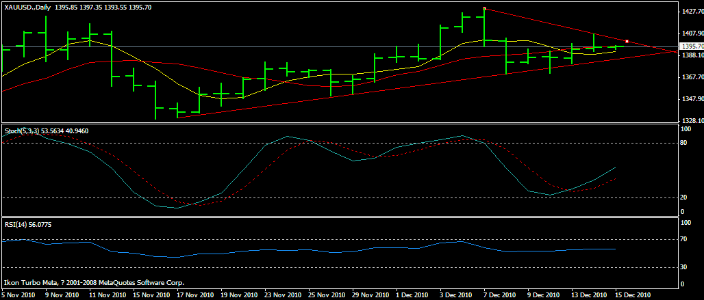 核心提示: 周二,現(xiàn)貨黃金大幅沖高回落,波幅:1408.10---1391.80美元/盎司,報收于1395.80,日呈上影線較長的陽線。  周二, 英國公布
