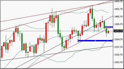 黃金建議方面(見圖一):從技術(shù)圖上來看,金價周四回抽1386(298)壓力下行,1378一線成為平臺壓力(297),也是日趨勢線壓制,金價日線已經(jīng)跌破布林道中軌以及8月初以來的日趨勢線,短期依然有下降空間,下方支撐1360、1350。操作上昨日建議空頭在1365一線逢低了結(jié)部分空頭,今日金價如果回抽1378(297)一線,可以輕倉建立空頭,止損1385(297.7)。