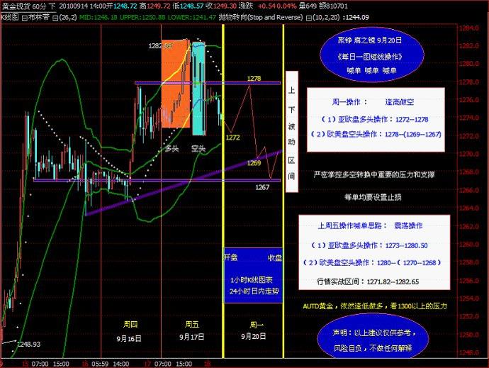 現(xiàn)在本評(píng)論對(duì)本周的整個(gè)走勢(shì)向?qū)欠旮咦隹?。本周的空頭是建立在短線(xiàn)和超短線(xiàn)的基礎(chǔ)上。今天雖然盤(pán)面高開(kāi),但,依然認(rèn)為逢高做空,整個(gè)一周的支撐將在1255附近,具體支撐點(diǎn)位可以參考本評(píng)論的行情配套圖
