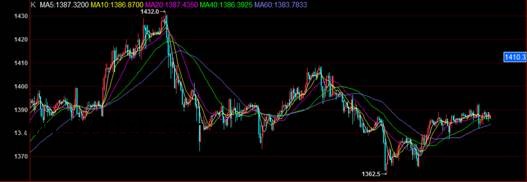 12-21日黃金震蕩上漲,開(kāi)盤(pán)1384.8美元/盎司,最高1391.7美元/盎司,最低1382.6美元/盎司,報(bào)收于1388.8美元/盎司,較上一交易日微漲0.16%。