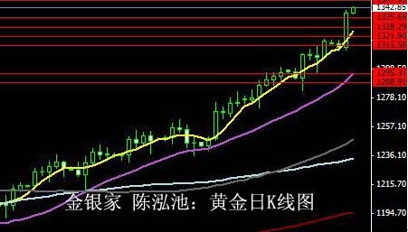 核心提示:  昨黃金開盤1314.30,最高至1341.25,最低1312.55,最后收盤于1338.75,K線呈大陽線形態(tài),黃金強勢不改,重點關注本周非農。