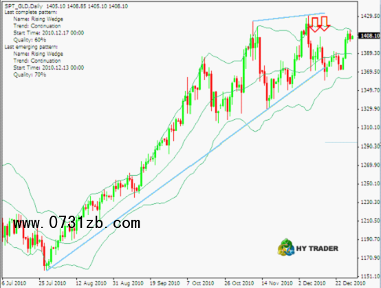 周四黃金價格錄得本周首次下跌,關鍵阻力位仍是日圖布林格通道上軌,2010年還剩下最后一個交易日,預計金價有望錄得三年來最高的年度漲幅約28%,以及創(chuàng)紀錄地連續(xù)第10年上漲?!?br />