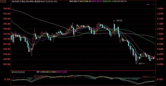 天通金上一交易日受國外市場馬丁路德金休市影響提前收市,一小時線顯示,黃金在288.50元附近小幅震蕩,黃金有望向上回調(diào)至MA60均線附近;四小時線顯示,黃金在288附近受阻震蕩整理;黃金小幅震蕩整理回調(diào),今日黃金或?qū)⑿》磸棥?br />