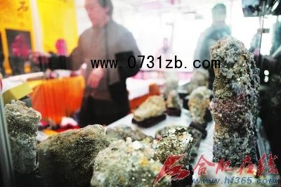 昨天,記者在探營中也看到這種“臺灣七彩玉”。參展商跟記者驕傲地介紹,“臺灣七彩玉”是臺灣的特產(chǎn),已經(jīng)成為一種收藏品。