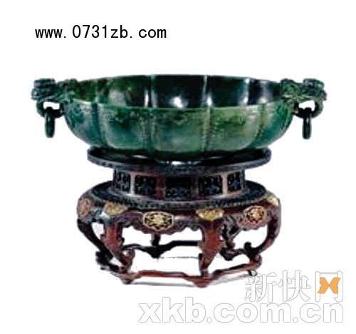 晚清玉清朝乾隆仿痕都斯坦碧玉碗。