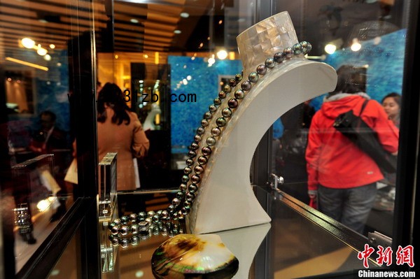 圖為參展的頂級珍珠項鏈。中新社發(fā)安源攝