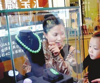 核心提示:價(jià)值1800萬元的翡翠在展示 記者宋延康攝  1800萬元的滿綠色翡翠項(xiàng)鏈現(xiàn)身南寧。28日,專屬定制極致夢想麟麟寶匯高級(jí)珠寶定制專