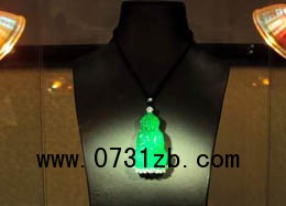 女模特現(xiàn)場(chǎng)展示翡翠掛飾。