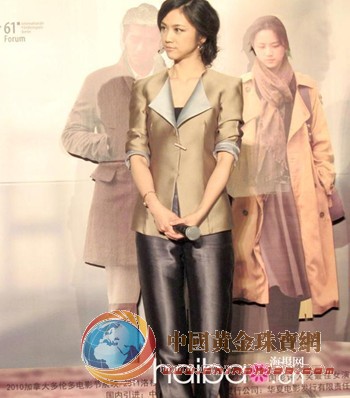 湯唯佩戴由潮宏基珠寶(CHJ JEWELLERY)提供的永恒印記手環(huán)出席《晚秋》首映發(fā)布會(huì)