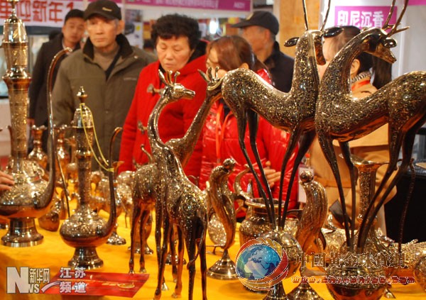 1月7日,參觀者在展臺觀看展出的工藝品。 |
