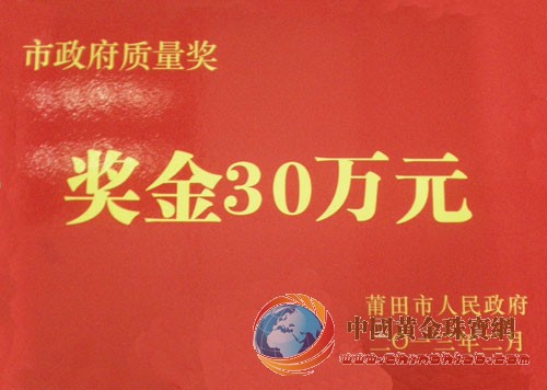 華昌珠寶榮獲首屆“莆田市政府質(zhì)量獎”
