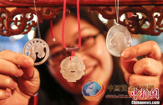 1月20日,“馬上有”系列樓蘭漠玉珠寶在北京中國(guó)好運(yùn)石道城展示。中新社發(fā) 張浩 攝