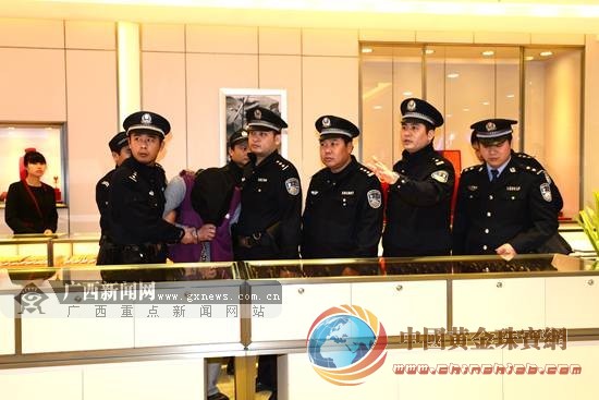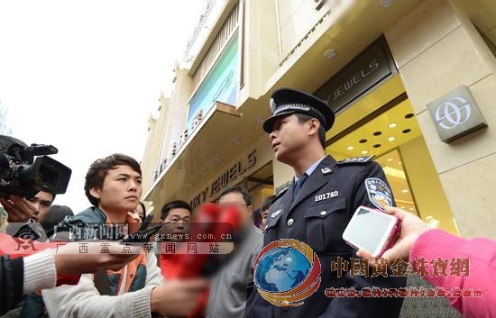 犯罪嫌疑人在搶劫的珠寶店指認(rèn)現(xiàn)場(chǎng)。 廣西新聞網(wǎng)記者 胡雁 攝