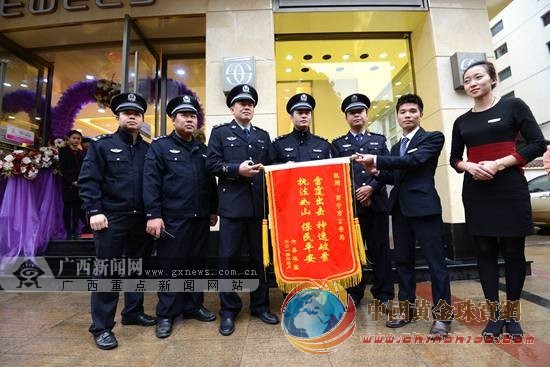 珠寶店向辦案民警贈(zèng)送錦旗表示感謝。 廣西新聞網(wǎng)記者 胡雁 攝