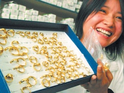 核心提示:昨日,老糧倉(cāng)鎮(zhèn)一女孩向記者展示自家的金飾。在老糧倉(cāng),幾乎家家都打金。賀文兵 攝  湖南新聞網(wǎng)消息 寧鄉(xiāng)人會(huì)讀書(shū),寧鄉(xiāng)人也會(huì)