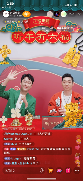 2022年1月27日,六福珠寶攜手“首席福運官”、乒乓球國手——許昕,在抖音平臺開啟“昕年有六?!敝辈セ顒樱c大家共迎新年。一小時的直播期間,大量熱情粉絲涌入,并自發(fā)地互動和分享。一時間,“福滿傳家,六福齊來”、“黃金左手戴黃金”等助力口號頻頻刷屏,更有許昕與粉絲連麥搶答環(huán)節(jié),將現(xiàn)場氣氛推向高潮。