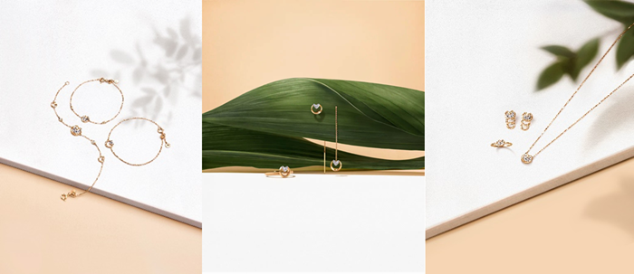 萌芽系列的產(chǎn)品工藝上精致立體,線條流暢高雅,微鑲工藝點綴天然美鉆,既突出心形葉子元素之間的特色,也更顯輕奢時尚。為了滿足年輕消費者的個性化審美和日常的搭配風(fēng)格,萌芽系列更是推出了不同長度的項鏈,營造經(jīng)典疊戴的層次感,盡釋時尚之美。