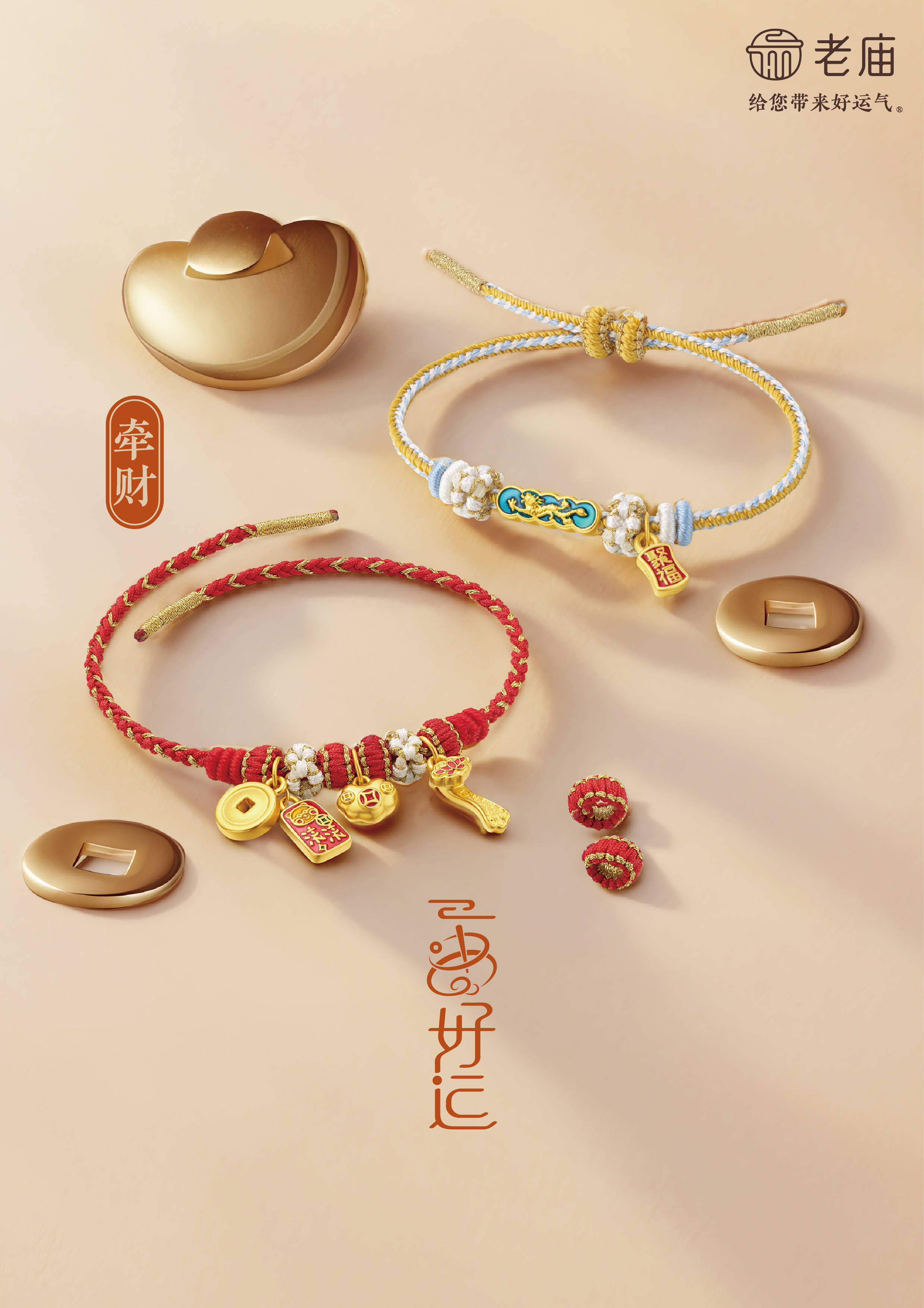 風(fēng)格可鹽可甜的老廟一串好運系列就很合適,用多彩手繩搭配潮趣黃金掛墜趣味十足,活潑俏皮、體感輕盈,單戴百搭,疊戴更加出彩!