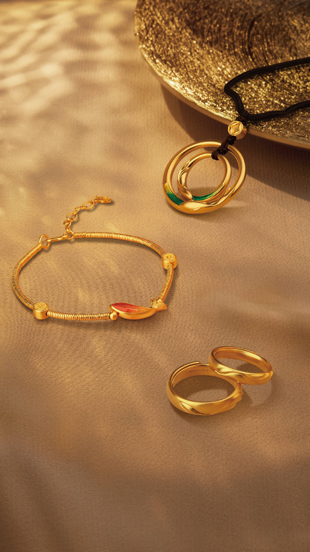 同系列的“財運滾滾”則以豐富多樣的趣味元素,賦予傳統(tǒng)紅繩新的時尚生命力,“小豬滾滾”、“小錢袋”、“小元寶”…… 靈動萌趣的黃金掛墜搭配甜美造型,秒變元氣girl,精致出街,回頭率MAX!