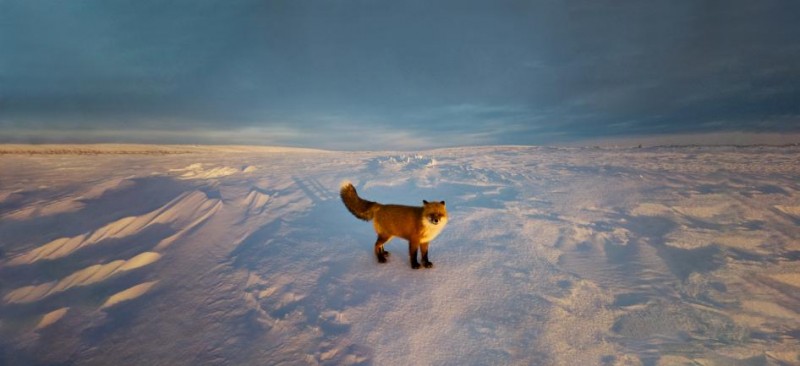 一只狐貍在加拿大耶洛奈夫自由穿行