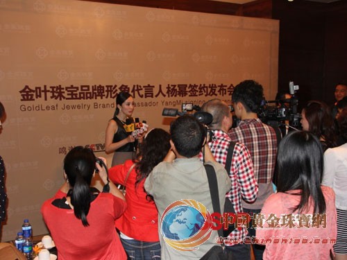 楊冪本人在簽約發(fā)布會上說道,成為金葉珠寶品牌代言人是她在自己演繹生涯的另一個榮耀時刻 。金葉珠寶股份有限公司領導在面對媒體與楊冪的對話中表達;"邀請貌美如花、陽光朝氣的楊冪傾情演繹代言金葉珠寶品牌 ,詮釋全新品牌形象,是金葉珠寶在品牌發(fā)展之路上的里程碑"。鳳凰衛(wèi)視著名主持人董嘉耀與楊冪互動,楊冪講述了為何代言金葉珠寶的意義,在她心中金葉珠寶的印象和對未來的展望,并現(xiàn)場展示佩戴的珠寶,展現(xiàn)華美的造型。伴隨著金葉特色黃金產品系列舞蹈秀,演繹著黃金文化與婚慶文化的結合,美麗的模特展示金葉的系列珠寶新品,盛情下伴隨楊冪出場,將現(xiàn)場的氣氛帶動的萬分火熱,陣陣掌聲響起來。晚會上鐘邵先生介紹了金葉珠寶品牌發(fā)展和媒體投放計劃,各界的領導們也發(fā)布了熱情洋溢的致詞,并肯定了金葉珠寶所取得的豐碩成果,前瞻性的展望了金葉珠寶未來的發(fā)展戰(zhàn)略與方向 ,幽默智慧的的言辭獲得滿場喝彩,表示希望借此發(fā)布會讓企業(yè)與各界一起共創(chuàng)雙贏,推動金葉珠寶再上新臺階,作為深圳A股上市公司,金葉珠寶將承載更多的企業(yè)和社會責任感,帶給股東更好的明天。