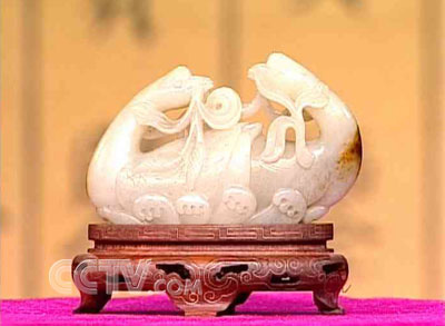 專家評述:這件東西雕工非常好,在這個細(xì)紋方面,以及在這個疊凹方面,它都顯示了乾隆工的一個特點。但是呢它不是宮里邊的東西,應(yīng)該是官宦之家的東西,它的上面帶著天然沁的皮,色皮。它是白的,里邊呢稍微閃一點青,所以叫青白玉,兩只鵝雕工都有神似,面子紋非常細(xì)膩,非常規(guī)矩。這件東西不但能當(dāng)筆架,也可以當(dāng)擺架來用,所以它有兩用,從96年呢到現(xiàn)在這個玉子的漲價不只是三倍,而且是五倍了。像這樣的子玉是兩萬元錢一公斤,你這個呢沒有500克雕不出這個東西來,光原材料就漲價就漲了不少,所以我給了9萬塊錢這個價格,我覺得這個價格還不算太高。